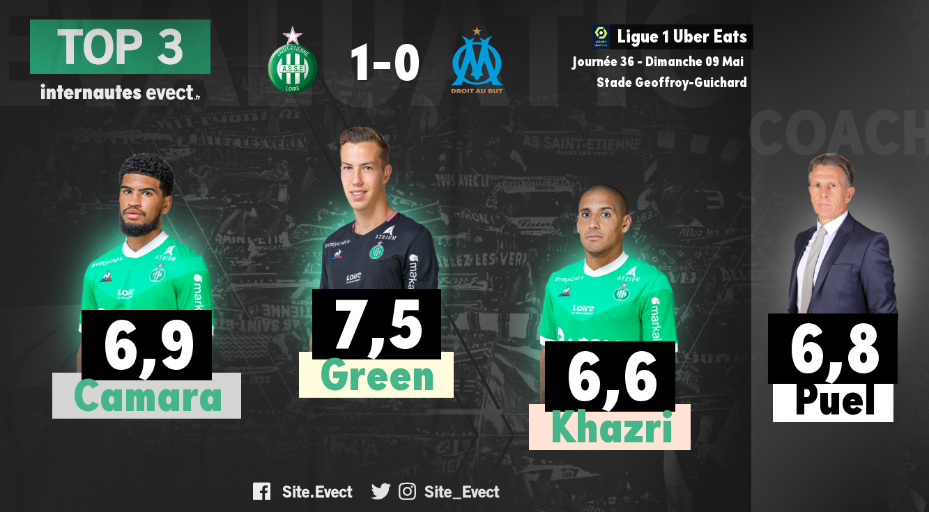 ? Un Vert dans l'équipe type !Les supporters se sont montrés bien plus généreux pour noter. Avec une moyenne de 6.7/10 bien loin du 5.2/10 de l'Equipe.