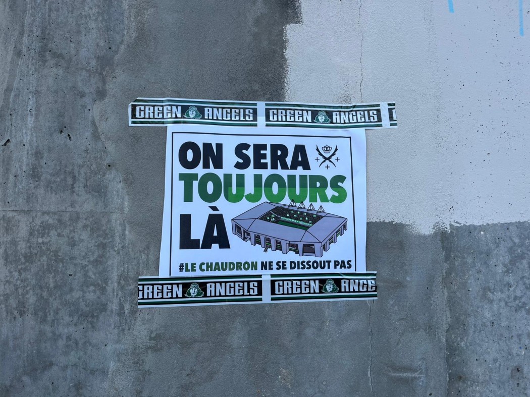 Plus globalement, de nombreuses affiches fleurissent dans toute la ville de Saint-Étienne mais aussi dans les communes alentours où l'on peut notamment lire : "Le Chaudron ne se dissout pas" ; "Touche pas à mes Kops" ; "GA Liberta" ; "Les Apaches ne meurent jamais" ; "On sera toujours là".