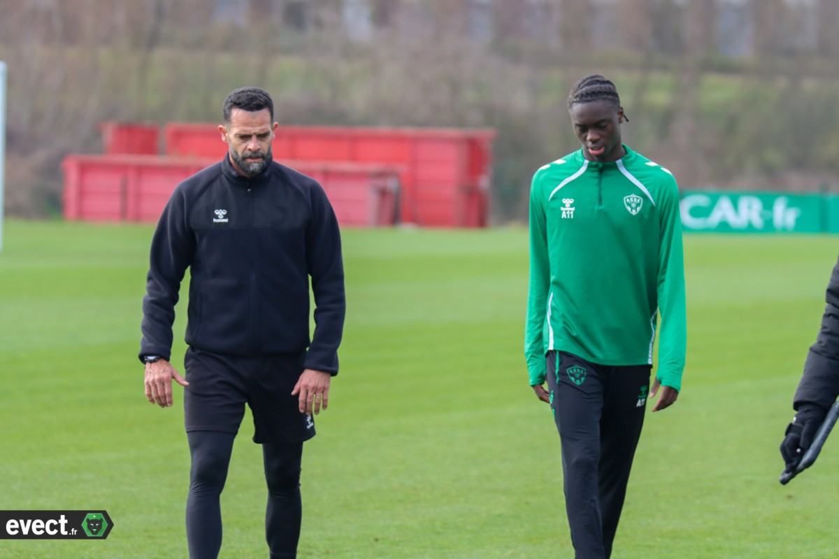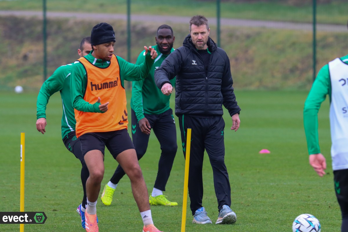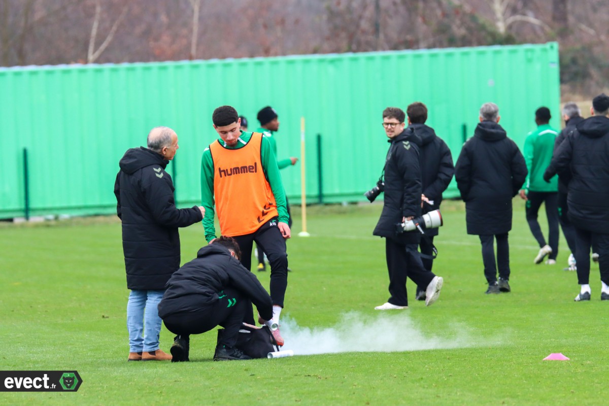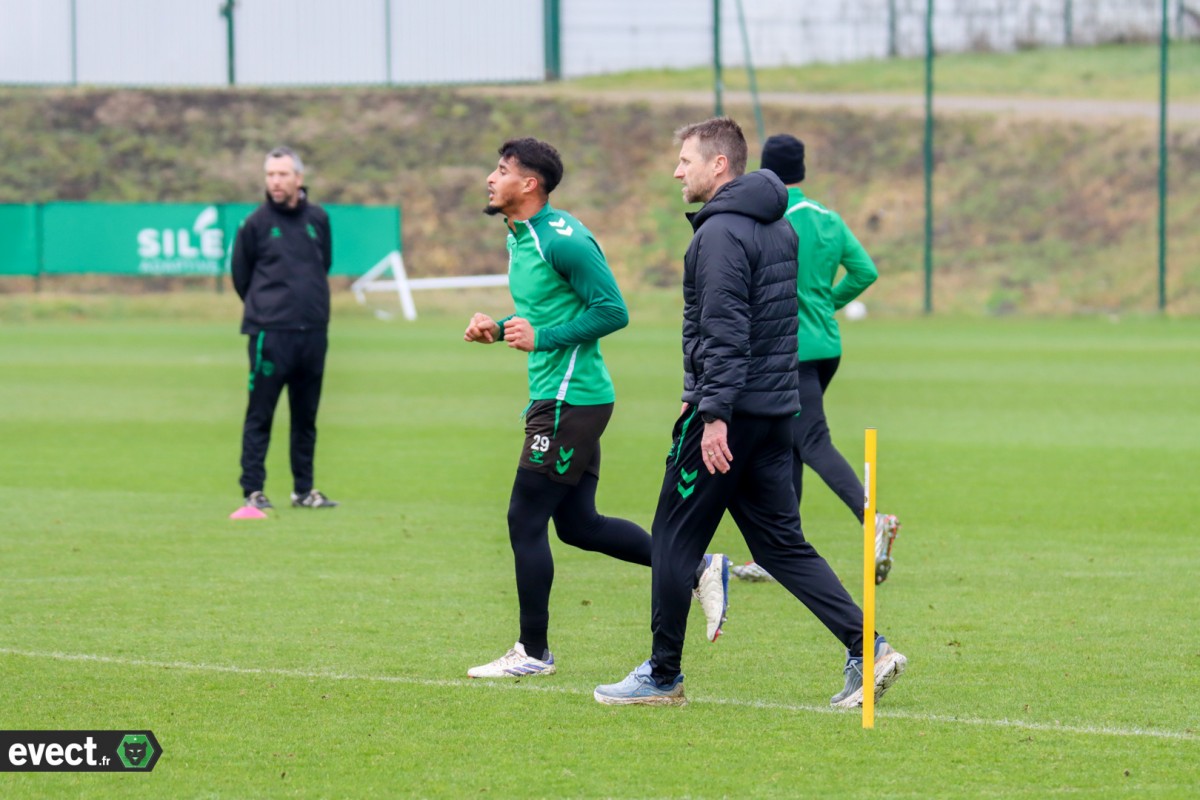 Devant quelques supporters stéphanois ayant fait le déplacement jusqu’au Centre sportif Robert-Herbin de L’Etrat, les Verts reprenaient l’entraînement ce mardi matin. Plusieurs bonnes nouvelles découlent de cette séance. Joshua Duffus et João Ferreira ont effectué l’intégralité de celle-ci avec le groupe. Malade la semaine dernière, Djylian N’Guessan était bien présent avec le groupe, tout comme Dylan Batubinsika de retour de la CAN depuis la fin de semaine dernière. De son côté, Zuriko Davitashvili a poursuivi son travail de réathlétisation sous la houlette du staff médical. De retour dans le groupe ce week-end, Ebenezer Annan était absent ce mardi matin.