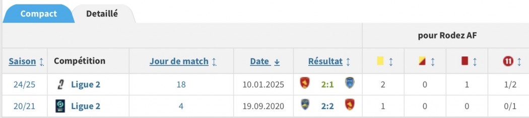 Jérôme Brisard connait moins bien le Rodez AF. À deux reprises, il a arbitré les Ruthénois dans sa carrière. La dernière fois était lors de la saison 2024-2025, contre Troyes (2-1).