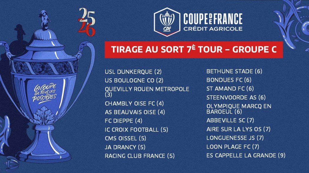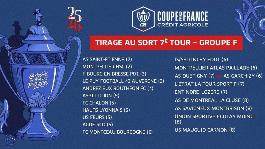 Les adversaires potentiels de l'ASSE au septième et huitième tour de Coupe de France (Groupe F) :