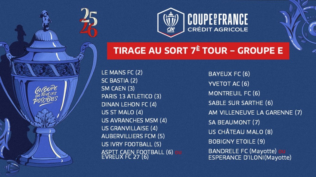 C'est ce mercredi que l'AS Saint-Étienne connaitra son adversaire pour le 7ème tour de Coupe de France et ses potentiels adversaires pour le 8ème tour. Avant ça, la Fédération Française de Football (FFF) a dévoilé les différents groupes pour le tirage au sort.