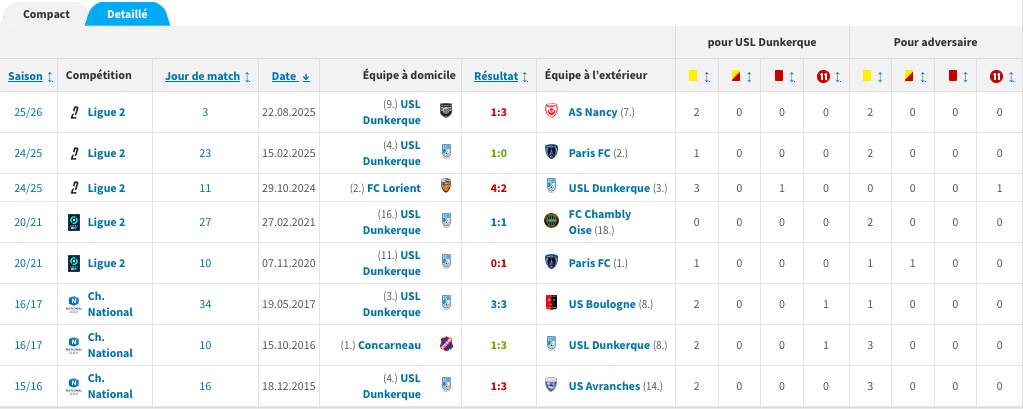 M. Gaillouste a également arbitré à plusieurs reprises l'USL Dunkerque avec un bilan plutôt négatif pour les Dunkerquois.