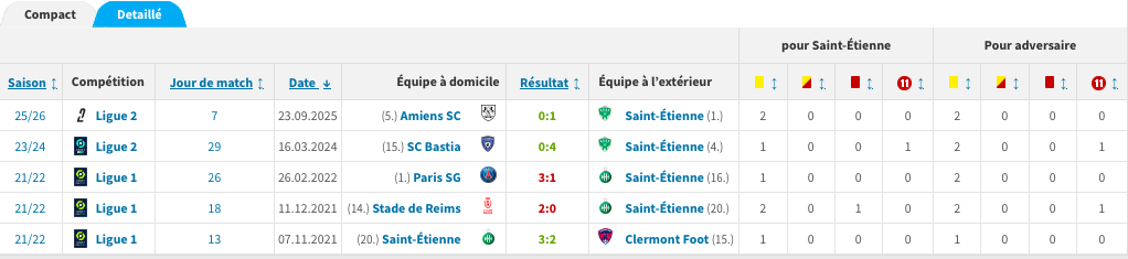 Pierre Gaillouste n'a arbitré que cinq matchs de l'AS Saint-Étienne au cours de sa carrière et une seule fois dans le Chaudron, c'était à l'occasion d'un Saint-Étienne - Clermont lors de la saison 2021-2022 (ndlr, victoire 3-2 des Verts). Depuis, c'est toujours à l'extérieur qu'il a arbitré l'ASSE, à Reims en 2021 pour une défaite 2-0, au Parc des Princes toujours lors de cette saison 2021-2022 pour un revers 3-1. Il a fallu attendre la saison 2023-2024 en Ligue 2 pour que l'arbitre soit une nouvelle fois désigné sur un match des Verts. Un match spectaculaire sur la pelouse du Sporting Club de Bastia avec une victoire 4 à 0 des joueurs d'Olivier Dall'Oglio (doublé de Mbuku et but de Chambost et Cardona). Cette saison, il était également l'arbitre du match entre les Verts et Amiens remporté par les hommes d'Horneland grâce à un but de Stassin en fin de match.