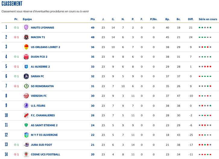 Cette saison, l’équipe réserve de l’ASSE connaît des difficultés dans ce championnat de National 3. Ce dimanche, avec la réception de la lanterne rouge, les Stéphanois avaient l’occasion de prendre du large sur la zone de relégation. La veille, Cosne, 13ème, s’était incliné face au nouveau leader, Hauts Lyonnais (0-2). Dans le même temps, Moulins Yzeure Foot, 12ème, a concédé le match nul sur la pelouse de la réserve d’Orléans, leur permettant de revenir à un point du 11ème, l’ASSE, premier non-relégable. Pour rappel dans ce championnat, ce sont les trois derniers qui descendent en Régional 1.