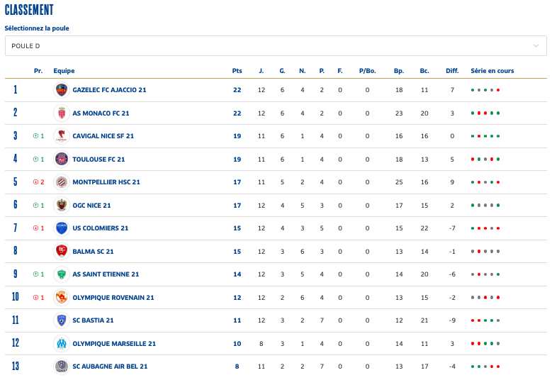 U19 Nationaux : Les joueurs de Frédéric Dugand étaient eux aussi opposés au Gazelec Ajaccio qui était leader du groupe, mais du côté de la Corse cette fois-ci. Une organisation étonnante forçant les jeunes du Gazelec (U17) et ceux de l'ASSE (U19) à se déplacer tour à tour alors qu'un seul et même déplacement aurait pu être organisé pour l'une des deux équipes avec donc un bilan carbone bien moindre. En déplacement à Ajaccio donc, les jeunes stéphanois ont signé un petit exploit. Pourtant, ça n'avait pas très bien débuté avec l’ouverture du score des locaux au bout de cinq minutes sur un CSC de Lengue Lenou. Les Verts vont réagir en fin de première période grâce à un but de Konte. Il faudra attendre la fin du match et un but victorieux de Jolivet à la dernière seconde pour que les U19 réussissent leur coup en Corse. Trois points plus qu’attendus qui donnent de l'air à l'ASSE.
