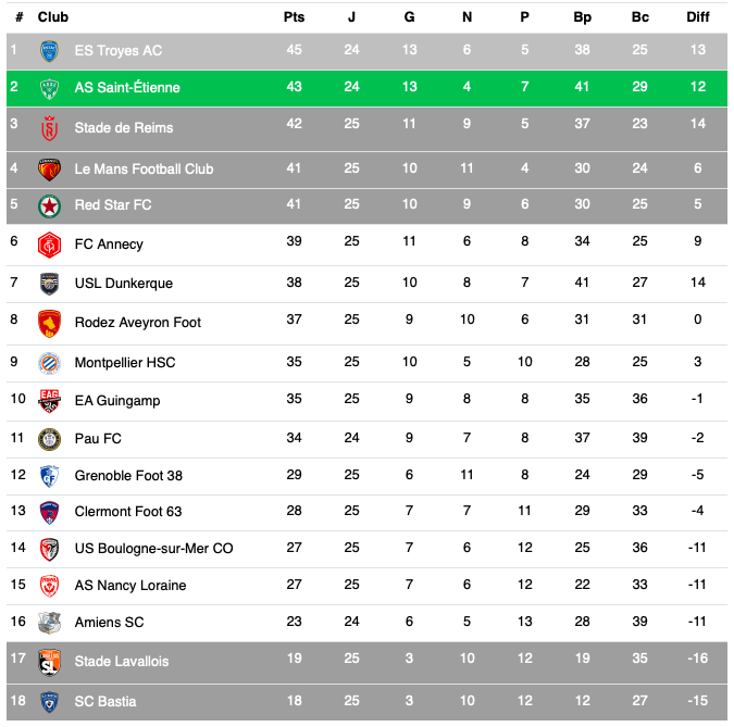 Les résultats de l'aprèm' et le classement avant Pau - ASSE en Ligue 2