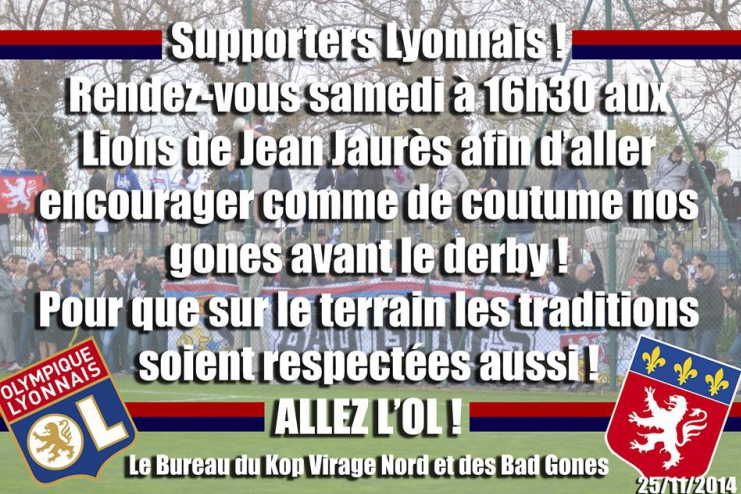 C'est devenu une habitude d'avant-derby. Les supporters lyonnais se sont donnés rendez-vous pour aller encourager une ultime fois leurs joueurs au centre d'entrainement de l'OL lors de la dernière séance avant la rencontre de dimanche soir, rapporte olympique-et-lyonnais.com.