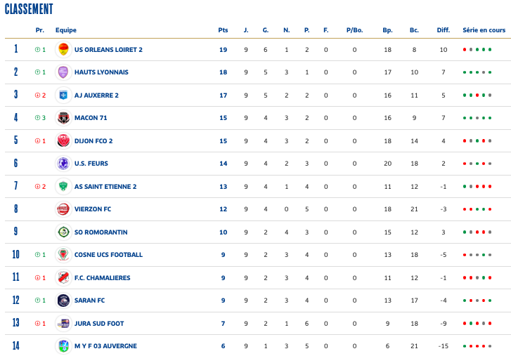 U19 Nationaux : Après un début de saison très compliqué, les jeunes stéphanois sortent la tête de l'eau. Opposés à l’US Colomiers, les Verts de Frédéric Dugand ont fait le job. D’abord avec un but de Bijot en fin de première période puis avec des réalisations de Depalle et Kasia dans le second acte. Le but de Razouk au début des arrêts de jeu pour Colomiers ne changeant pas le résultat final du jour (3-1). Rendez-vous sur la pelouse de l’Olympique Rovenain samedi prochain pour les joueurs de Frédéric Dugand. Au classement, les Stéphanois remontent encore.
