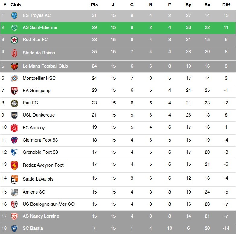 Ligue 2 : Le classement après le match en retard de la J11 :