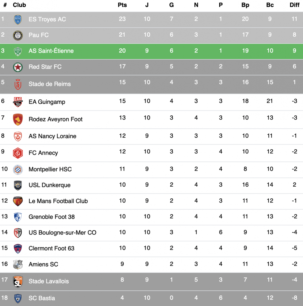 Le multiplex de la 10ème journée de Ligue 2 vient de s’achever. Co-leaders avec l’AS Saint-Étienne, Troyes et Pau jouaient ce soir et ont tous les deux pris des points, en attendant le match des Verts face au Mans.