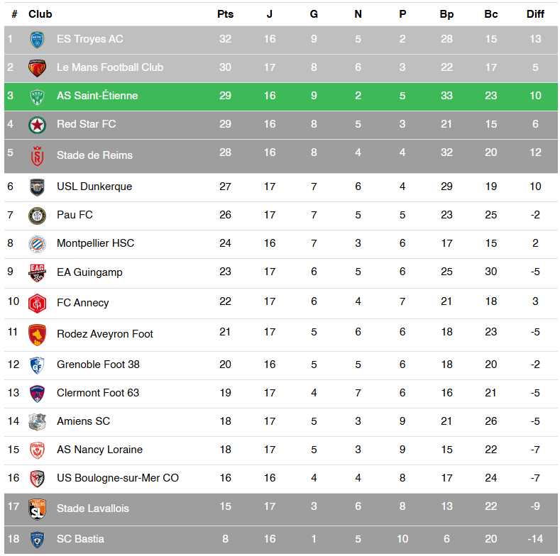 Ligue 2 - Les résultats et le classement après le multiplex de la J17