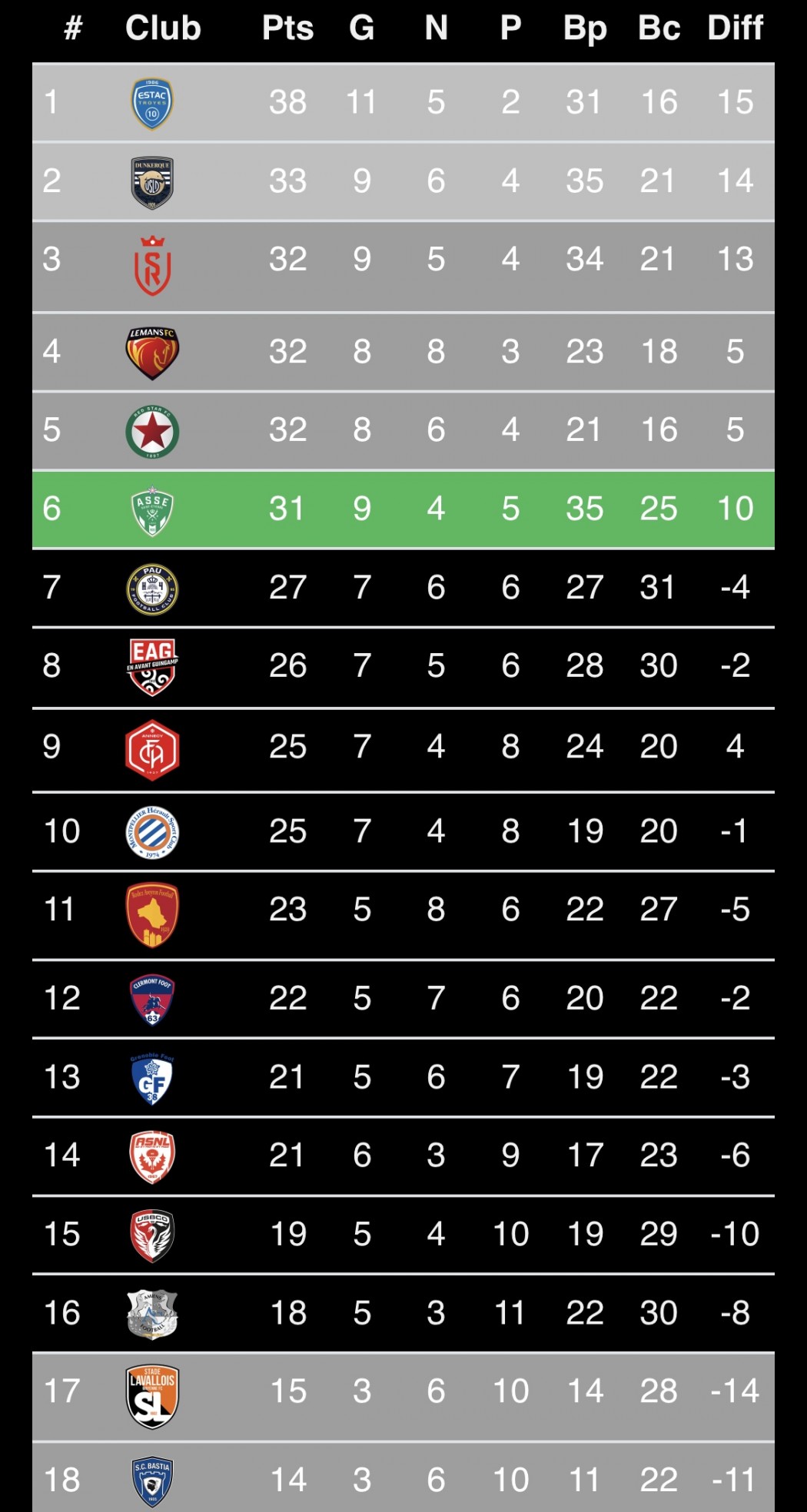 Ce vendredi soir, l'AS Saint-Étienne était notamment attentive aux performances des Manceaux et des Dunkerquois qui en cas de résultats positifs, à savoir des nuls ou des victoires, pouvaient doubler provisoirement les Verts. Face à Rodez, Le Mans a arraché le nul (1-1) tandis que Dunkerque s’est imposé contre Pau (3-1). L'AS Saint-Étienne tombe donc provisoirement à la sixième place du classement de Ligue 2 avant d'affronter Clermont demain soir.
