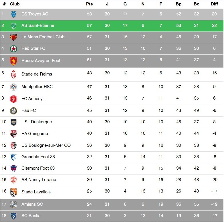 Ligue 2 - Les résultats et le classement après le multiplex de la J31