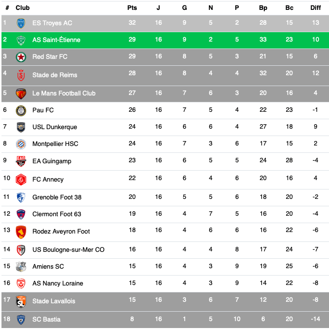 Avec sa défaite du côté de Dunkerque samedi soir (1-0), l'AS Saint-Étienne avait laissé l'opportunité au Stade de Reims de revenir à un petit point en cas de victoire lundi soir contre Laval. Chose faite pour les Rémois qui n'ont laissé aucune chance aux Lavallois en ouvrant le score dès la 17ème minute de jeu par Nicolas Pallois puis en faisant le break grâce à Keito Nakamura à la demi-heure de jeu. À la 42ème minute, Malik Tchokounte marquait contre-son-camp pour donner trois buts d'avance à Reims. En seconde mi-temps, les Rémois se mettaient définitivement à l'abri avec un but de Bojang à vingt minutes de la fin (4-0). Grâce à cette large victoire, les Rémois reviennent sur l'AS Saint-Étienne, à seulement une unité.