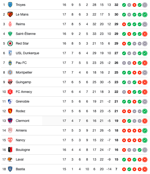 Le programme et les résultats de la 17ème journée de Ligue 2 :