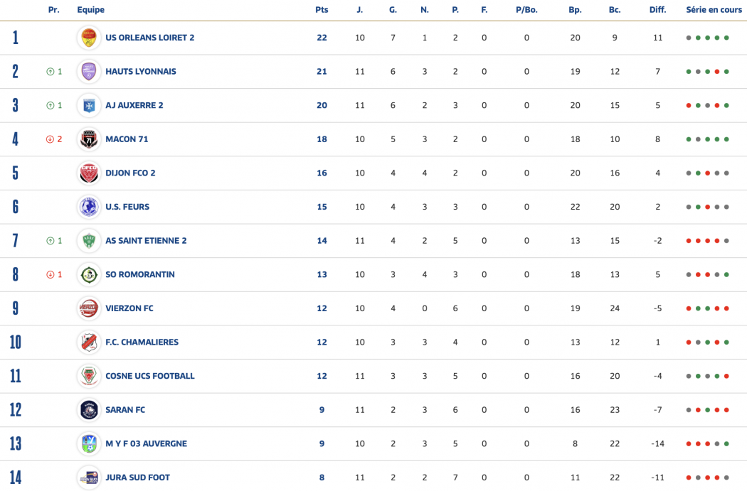 Avec une équipe profondément diminuée, les joueurs de la réserve ont fait un joli résultat sur la pelouse de Jura Sud ce samedi soir (1-1). Si les locaux ont rapidement marqué dans cette rencontre grâce à Sonko (1-0 6’), c’est la capitaine Makhloufi qui a remis les deux équipes à égalité après la demi-heure de jeu (1-1 34’). Un résultat qui permet aux joueurs de Sylvain Gibert de prendre temporairement la septième place du championnat et de mettre fin, après un très joli début de saison, à une série de quatre défaites consécutives en championnat.
