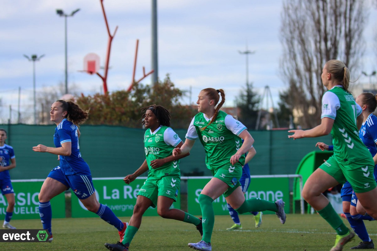 Ce match revêt une importance pourtant capitale pour les Vertes toujours avant-dernières et relégables avant le coup d'envoi mais qui pouvaient sortir de la zone rouge en cas de résultat positif cet après-midi, un match nul ou une victoire, en attendant le déplacement de Montpellier à Nantes à 17 heures. C'est Ali Nadjim qui allume la première mèche dans cette rencontre d'une tentative lointaine qui passe au-dessus (12e). Les Vertes sont à l'initiative et sur un centre venu de la gauche, Hornemann reprend le ballon de la tête, c'est capté par Wahl (16e). Dans la foulée, les Vertes manquent d'être punies mais le petit pointu de Barrett devant Pinguet, sortie à son encontre, passe juste à côté (16e). Ali Nadjim est la plus active devant, à l'image d'une frappe puissante qui passe malheureusement encore à côté (27e). C'est souvent de loin que les Vertes essayent de faire la différence, Hornemann s'essaye elle aussi avec un tentative de lob, c'est manqué (30e). Cinq minutes plus tard, cette même Hornemann se procure peut-être la plus belle occasion de la mi-temps avec un tir en pivot qui frôle le poteau (35e). C'est Bataillard qui aura la dernière situation de ce premier acte en obligeant Wahl à la parade sur sa gauche (45e). À la pause, les deux équipes sont à égalité (0-0).
