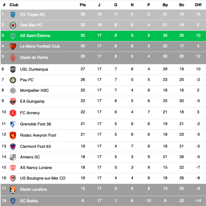 Troyes prend le large en tête de la Ligue 2, l'ASSE sous pression