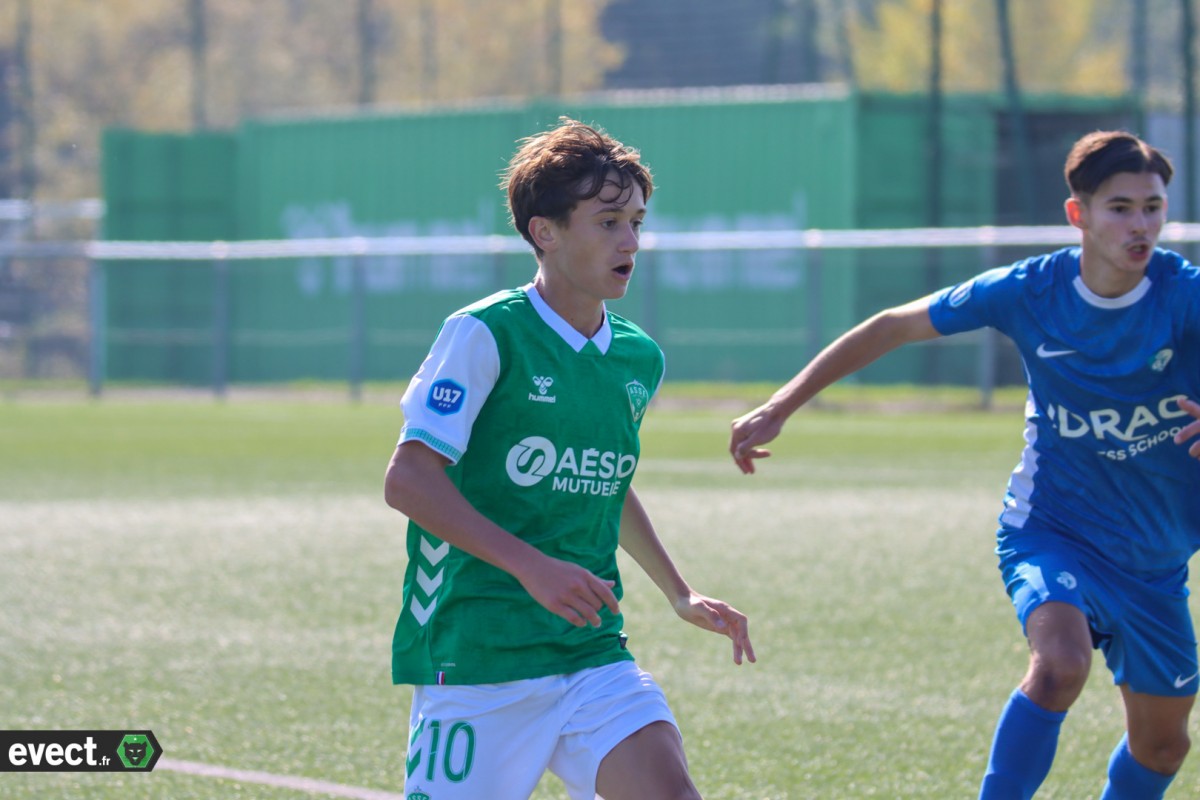 Les U17 Nationaux de l'AS Saint-Étienne accueillaient ceux du Grenoble Foot 38 ce samedi en début d'après-midi sur le terrain Georges Bereta du Centre sportif Robert-Herbin de L'Etrat. Grâce à des buts de Piskor, Mansouri et Assoumani, et à Vial qui a sorti un pénalty, l’ASSE s’est imposée (3-0).