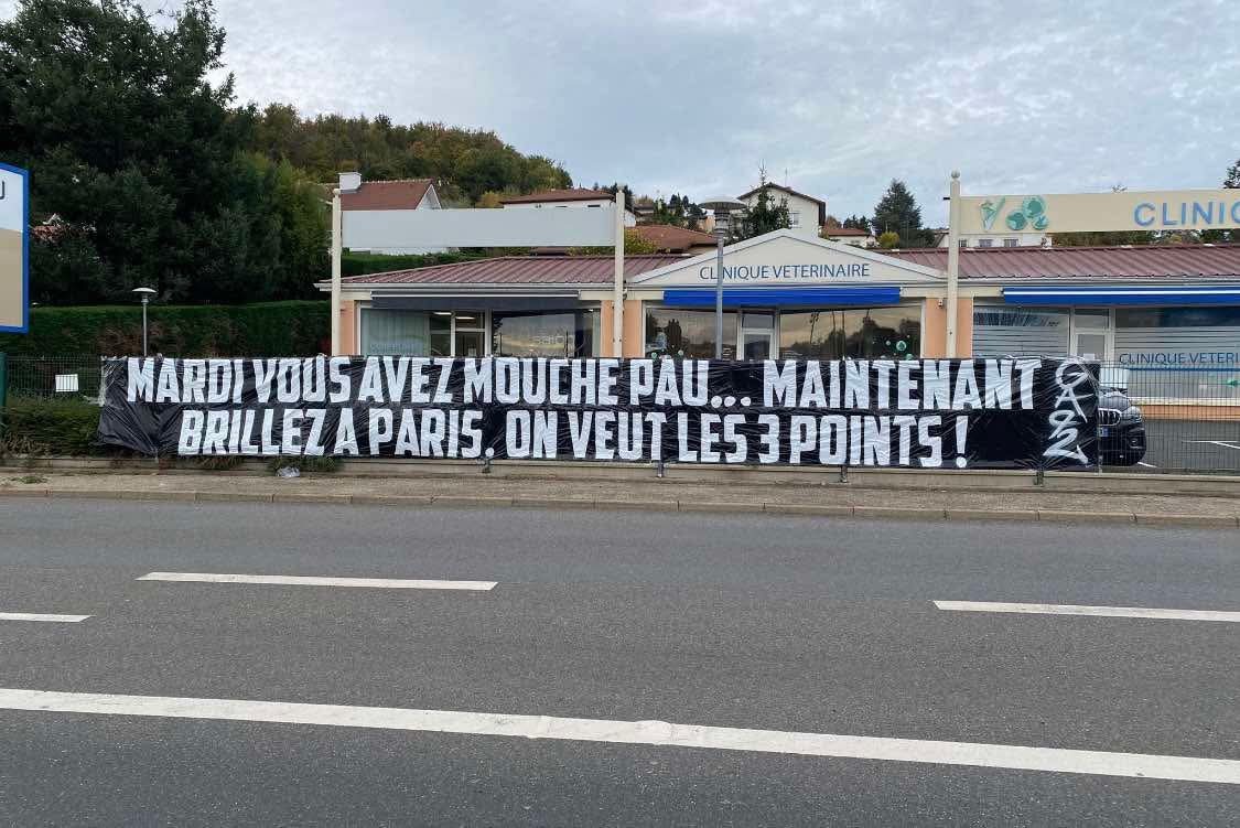 C'est via une banderole accrochée devant le Centre sportif Robert-Herbin de L'Etrat que les Apaches ont livré leurs derniers encouragements à l'ASSE ce vendredi : "Mardi vous avez mouché Pau... Maintenant brillez à Paris, on veut les trois points !"