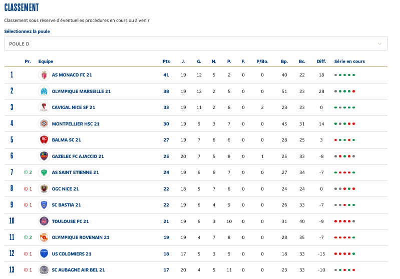 U19 Nationaux : Dans un duel de bas de tableau face aux SC Aubagne Air Bel, les joueurs de Frédéric Dugand devaient s'imposer à L'Etrat. Chose faite dans un match assez fou. À la 58e minute de jeu, les visiteurs ouvrent le score grâce à Luca Nicolas Dagau (0-1). La réponse stéphanoise est presque immédiate, Adam Baallal égalise deux minutes plus tard d'une belle reprise (60' 1-1). Trois minutes après cette égalisation, Mylan Toty donne l'avantage à l'ASSE. Les Stéphanois se font reprendre à la 69e minute, Soiyir Ahamada remettant le SC Air Bel à hauteur (2-2). Saint-Étienne repart à l'attaque, pousse et est logiquement récompensé à la 80e minute, Mylan Toty obtenant un penalty transformé par Nils Rised (3-2). Au classement, l'ASSE se donne un peu d'air avec les dernières places en pointant à la septième place.