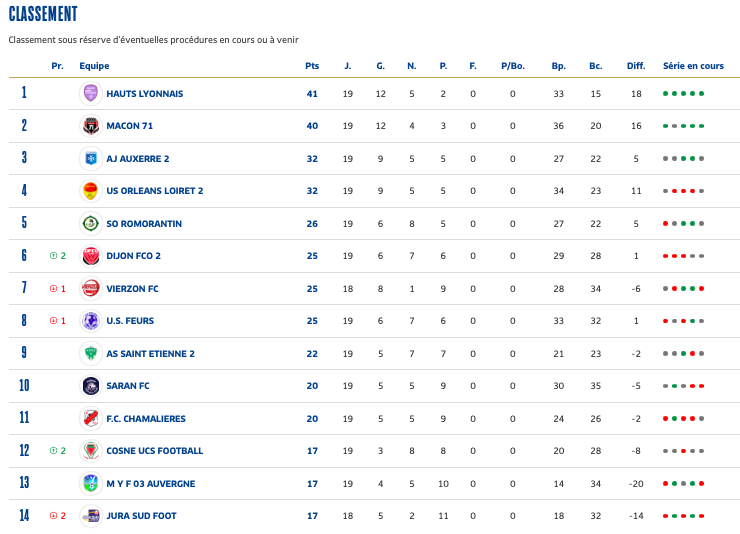 National 3 : Opposée à Dijon à L'Etrat, la réserve de l'ASSE était grandement renforcée par le groupe professionnel avec notamment Lamba, Annan, Gadegbeku, Eymard, Moueffek et Duffus. Pas suffisant néanmoins pour l'emporter. Malgré l'ouverture du score de Duffus et un deuxième but de Cissé permettant à l'ASSE de reprendre l'avantage après l'heure de jeu, les Verts ont craqué une deuxième fois juste avant d'entrer dans le dernier quart d'heure de jeu, concédant le match nul (2-2). Au classement, les joueurs de Sylvain Gibert sont neuvièmes.